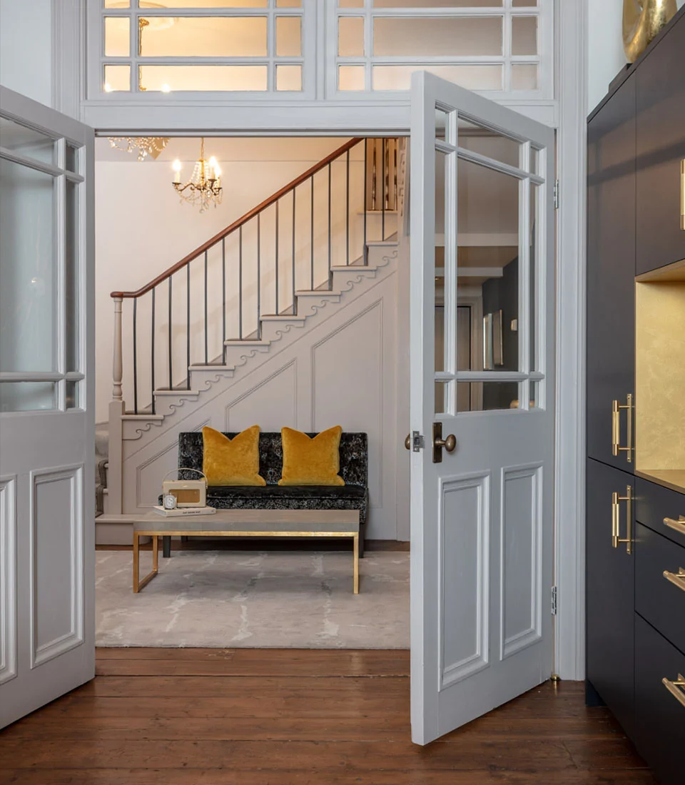 Our principal expertise is in whole-home refurbishment, and new-build interior architecture, design projects, extensions and open-plan kitchen design. But we’re also happy to take on smaller projects, including individual rooms such as kitchens, bathrooms and bedrooms with particularly challenging, intriguing or unusual dimensions. As it happens, we had previously worked on the rest of this beautiful five story townhouse – the kitchen being the jewel in the crown of the ongoing project.